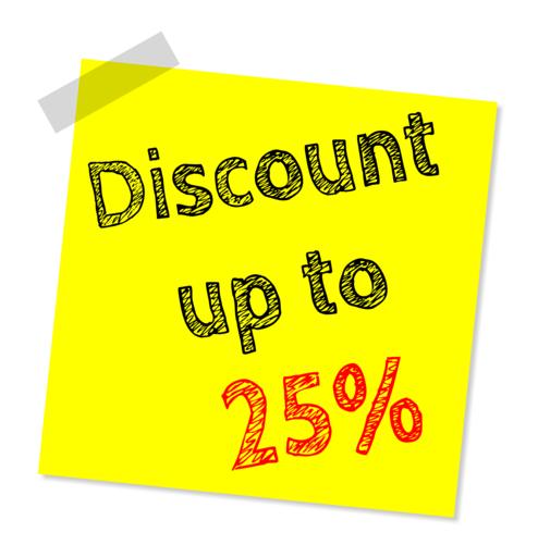 Keywords: up to twenty five percent off discount sale offer marketing percentage promotion reduction shopping rebate percent price clearance retail bargain