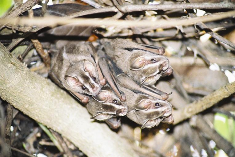 Keywords: Uroderma bilobatum.jpg en Chiroptera Microchiroptera Noctilionoidea Phyllostomidae es En la foto cuatro Murciélagos tolderos de listas blancas Uroderma bilobatum tomada en el Bosque Protector Cerro Blanco http //www bosquecerroblanco com/ en Guayaquil Ecuador Colección fotográfica del autor http //luzyceleritas blogspot com/2009/04/primera-prueba html Manuel Mejia http //www blogger com/profile/15242302423331251080 2007-11-15 Bosque Protector Cerro Blanco Guayaquil Ecuador Nature of Guayaquil mammals of Ecuador Uroderma bilobatum