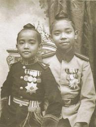 | Keywords: Urubongs Rajsombhoj and Prajadhipok Sakdidej.jpg en HRH Prince Urubongs Rajsombhoj left with HRH Prince Prajadhipok Sakdidej the Prince of Sukhothai later King Rama VII in their childhood th พระ จ้าบรมวงศ์ ธอ พระองค์ จ้าอุรุพงศ์รัชสมโภช ซ้าย และสม ด็จพระ จ้าลูกยา ธอ จ้าฟ้าประชาธิปกศักดิ ดชน์ กรมขุนสุโขทัยธรรมราชา ซึ่งต่อมาคือ พระบาทสม ด็จพระปก กล้า จ้าอยู่หัว รัชกาลที่ ๗ มื่อทั้งสองพระองค์ยังทรงพระ ยาว์ Bureau of the Royal Household Kingdom of Thailand author 1900 PD-old Chao Fa princes of Thailand Rama VII |