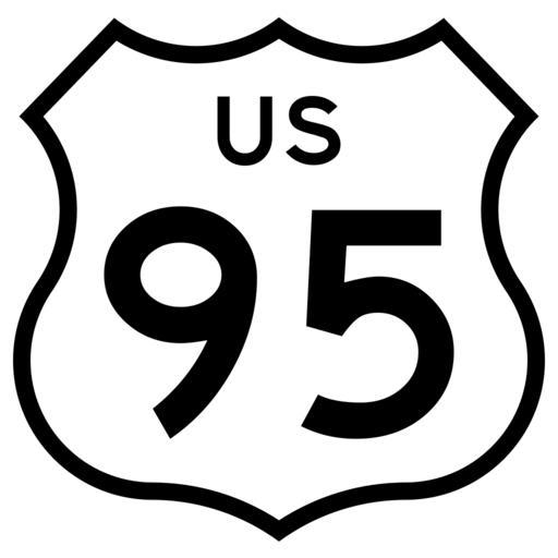 Keywords: US 95 (CA).svg 24 in by 24 in 610 mm by 610 mm California-style U S Route shield made to the specifications of the http //www dot ca gov/hq/traffops/signtech/signdel/specs/G26-2 pdf 2002 edition of Standard Highway Signs with 10 in 250 mm numerals Uses the http //www triskele com/fonts/index html Roadgeek fonts United States law does not permit the copyrighting of typeface designs and the fonts are meant to be copies of a U S Government-produced work anyway own SPUI spuiother Diagrams of California US route shields 095 SVG road signs in California 095 U S Route 95 in California 1961 cutout U S Highway shields 095 |
