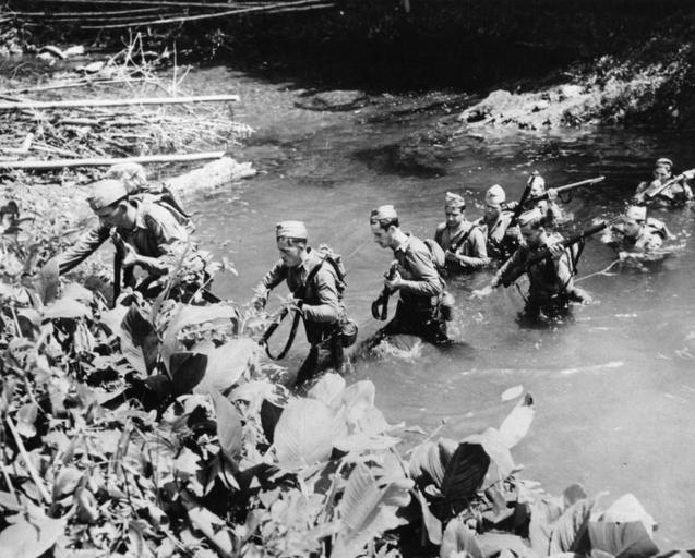 Keywords: US Bases in the Caribbean during the Second World War OEM21397.jpg US Bases in the Caribbean during the Second World War<br/> United States soldiers carrying their rifles shoulder high cross a river during a jungle warfare training course at one of the remote outposts manned by American troops somewhere in the Caribbean American official photographer Second World War http //media iwm org uk/iwm/mediaLib//39/media-39707/large jpg OEM 21397 205196741 This image was created and released by the Imperial War Museum on the http //www iwm org uk/corporate/privacy-copyright/licence IWM Non Commercial Licence This photograph was taken by American military personnel in their official duties and is public domain under US law consequently the following licence applies in addition to any other claim PD-USGov-Mil Ministry of Information Second World War Official Collection Associated people and organisations United States Army Associated places Caribbean Associated events Second World War Associated themes United States Army 1939-1945 Empire Commonwealth Associated keywords Land Warfare Training Empire Commonwealth photographs PD-USGov American First World War Official Exchange collection Images uploaded by Fæ |