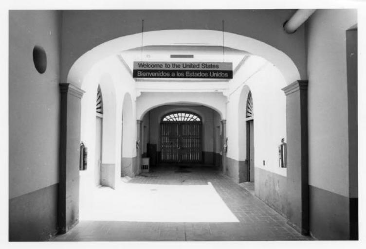 | Keywords: US Customs House, Ponce, Photo 4.jpg en U S Customs House in Ponce Puerto Rico Passage and courtyard looking north James C Massey Exec Vice Pres and Shirley Maxwell Associate National Preservation Institute National Building Museum Washington D C and the Federal Historic Preservation Office U S Department of the Treasury Washington D C January 7 1988 In National Register of Historic Places Registration Form - U S Custom House Ponce United States Department of the Interior National Park Service Washington D C Section 12 Listing Reference Number 88000073 February 10 1988 James C Massey 1987-06-01 Custom houses in Puerto Rico PD-USGov |