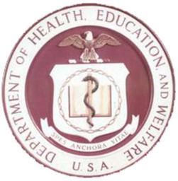 | Keywords: US-DeptOfHeathEducationAndWelfare-SealPhoto.png Seal of the old United States Department of Health Education and Welfare The seal was defined by Executive Order 10510 on December 17 1953 The blazon is defined http //www hhs gov/hhsmanuals/gam/chapters/1-20 pdf here as <blockquote> <p>SHIELD Argent an open book with sanguine binding charged overall with a staff of Aescalapius paleways within an annulet of chain all proper </p> <p>CREST On a wreath argent and sanguine an American bald eagle displayed and wings partially inverted proper </p> <p>Below the shield a white scroll inscribed with the motto <small>SPES ANCHORA VITAE</small> in black letters all on a circular sanguine background within a white band inner edge white outer edge sanguine and inscribed <small>DEPARTMENT OF HEALTH EDUCATION AND WELFARE U S A </small></p> </blockquote> The Latin inscription means Hope is the anchor of life From a http //www trumanlibrary org/photographs/view php id 1180 photo of the seal on a dais direct image URL http //www trumanlibrary org/photographs/58-46 jpg ca 1954 National Archives and Records Service photo <gallery widths 155 heights 155 >Image Hewseal gif File US-DeptOfHealthEducationAndWelfare-Seal-EO10510 jpg Executive Order version</gallery> United States Department of Health and Human Services Seals of United States Executive Agencies Rod of Asclepius in heraldry Books in heraldry PD-USGov |