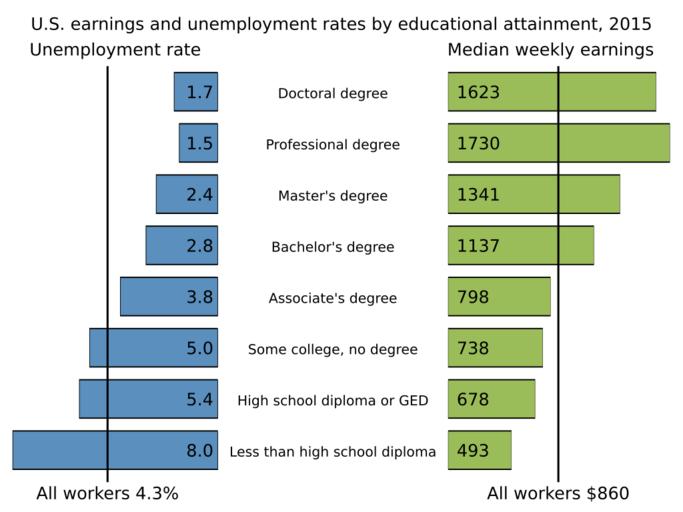 Keywords: US earnings by degree.svg translate yes en United States unemployment and earnings by educational attainment in 2015 Data from http //www bls gov/emp/ep_chart_001 htm BLS 2016-04-07 own Delphi234 other versions current annually cc-zero Economic bar charts Human resources management Income distribution in the United States Educational attainment statistics for the United States |