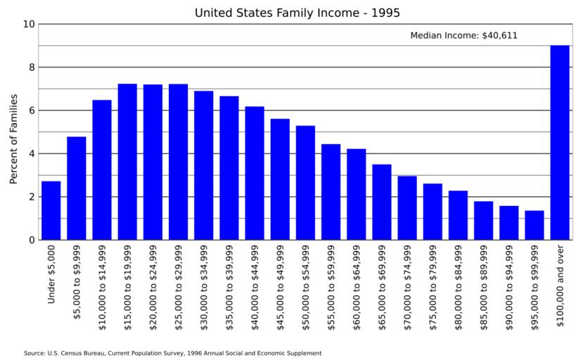 Keywords: US family income 1995.svg en United States family income distribution for 1995 Data from US Census https //www census gov/data/tables/time-series/demo/income-poverty/cps-finc/finc-01 html FINC-01 2016-06-16 own Delphi234 other versions cc-zero Income distribution in the United States |