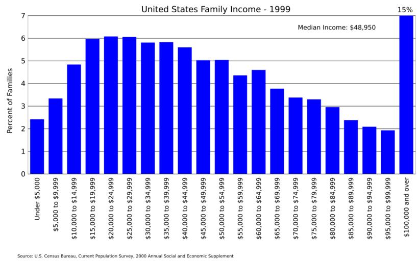 | Keywords: US family income 1999.svg  en United States family income distribution for 1999 Data from US Census https //www census gov/data/tables/time-series/demo/income-poverty/cps-finc/finc-01 html FINC-01 2016-06-16 own Delphi234 other versions cc-zero Income distribution in the United States |