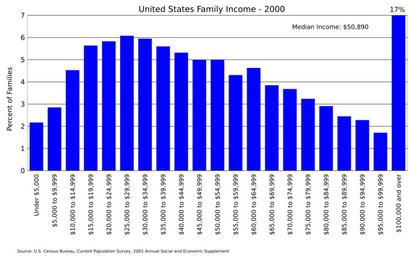 | Keywords: US family income 2000.svg  en United States family income distribution for 2000 Data from US Census https //www census gov/data/tables/time-series/demo/income-poverty/cps-finc/finc-01 html FINC-01 2016-06-16 own Delphi234 other versions cc-zero Income distribution in the United States |
