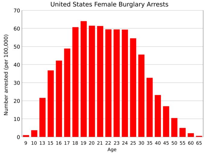 | Keywords: US female arrests for burglary by age.svg translate yes en Arrests in the United States of females for burglary in 2014 by age Data from https //www fbi gov/about-us/cjis/ucr/crime-in-the-u s/2014/crime-in-the-u s -2014/tables/table-40 UCR own Delphi234 2016-05-23 Cc-zero Arrest statistics for the United States SVG bar charts Histograms |