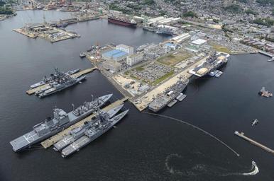 | Keywords: US Fleet Activities Sasebo aerial view in June 2014.JPG en The U S Navy amphibious assault ship USS Bonhomme Richard LHD-6 right the Austin-class amphibious transport dock ship USS Denver LPD-9 the Whidbey Island-class amphibious dock landing ship USS Germantown LSD-42 and ships assigned to the Japan Maritime Self-Defense Force are moored at Fleet Activities Sasebo Japan Bonhomme Richard was undergoing a maintenance period 2014-06-19 140619-N-BJ178-167 Navy http //www navy mil/view_image asp id 177939 U S Navy photo by Mass Communication Specialist 2nd Class Michael Achterling PD-USGov-Military-Navy United States Fleet Activities Sasebo |