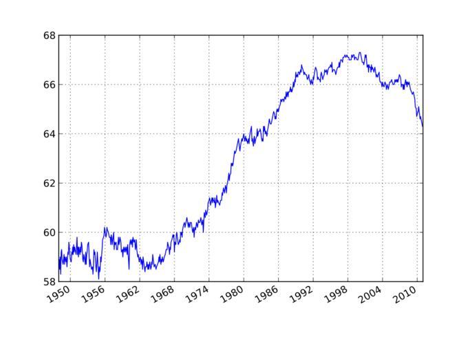 | Keywords: US Labor Participation Rate 1948-2011.svg en Graph of US Civilian Labor Participaton Rate from 1948 to 2010 http //data bls gov/PDQ/servlet/SurveyOutputServlet data_tool latest_numbers series_id LNS11300000 years_option specific_years include_graphs true to_year 2010 from_year 1948 User Int21h 2011-02-04 cc-zero thumbthumb Source code <source lang python > /usr/bin/env python import matplotlib figure import datetime y 58 6 58 9 58 5 59 0 58 3 59 2 59 3 58 9 58 9 58 7 58 7 59 1 58 7 59 0 58 9 58 8 59 0 58 6 58 9 59 2 59 1 59 6 59 4 59 2 58 9 58 9 58 8 59 2 59 1 59 4 59 1 59 5 59 2 59 4 59 3 59 2 59 1 59 1 59 8 59 1 59 4 59 0 59 4 59 2 59 1 59 4 59 2 59 6 59 5 59 5 58 9 58 8 59 1 59 1 58 9 58 7 59 2 58 7 59 1 59 2 59 5 59 5 59 6 59 1 58 6 58 9 58 9 58 6 58 5 58 5 58 6 58 3 58 6 59 3 59 1 59 2 58 9 58 5 58 4 58 7 59 2 58 8 58 6 58 1 58 6 58 4 58 5 59 0 58 8 58 8 59 3 59 7 59 7 59 8 59 9 60 2 60 2 59 9 59 8 59 9 60 2 60 1 60 1 60 0 60 0 59 8 59 8 59 8 59 5 59 9 59 8 59 5 59 5 59 8 60 0 59 3 59 6 59 5 59 5 59 6 59 3 59 3 59 3 59 6 59 8 59 5 59 6 59 8 59 7 59 6 59 2 59 2 59 3 59 0 59 3 59 4 59 2 59 2 59 4 59 2 59 3 59 4 59 1 59 5 59 1 59 1 58 5 59 5 59 5 59 7 59 5 59 5 59 7 59 4 59 8 59 7 59 6 59 6 59 7 59 3 59 4 59 7 59 3 59 3 59 0 59 1 59 1 58 8 58 8 59 0 58 9 58 7 58 9 58 8 58 5 59 0 59 0 58 7 58 5 58 4 58 6 58 6 58 6 58 8 58 8 58 5 58 7 58 5 58 7 58 8 58 8 58 5 58 6 58 8 58 7 59 1 59 1 58 7 58 6 58 6 58 7 58 6 58 5 58 6 58 6 58 7 58 7 58 8 59 0 58 8 59 1 58 9 58 7 58 9 58 8 59 0 59 0 58 8 58 8 59 0 59 0 59 1 59 1 59 3 59 3 59 3 59 6 59 5 59 5 59 3 59 1 59 4 59 3 59 6 59 6 59 7 59 7 59 9 59 8 59 9 59 2 59 6 59 6 59 5 59 9 60 0 59 8 59 6 59 5 59 5 59 6 59 7 59 6 60 0 59 9 60 0 59 8 60 1 60 1 60 3 60 3 60 4 60 2 60 2 60 4 60 4 60 6 60 6 60 3 60 2 60 4 60 3 60 2 60 4 60 4 60 4 60 4 60 1 60 0 60 1 60 2 59 8 60 1 60 2 60 1 60 1 60 4 60 4 60 2 60 2 60 5 60 4 60 4 60 4 60 4 60 6 60 4 60 3 60 3 60 5 60 0 60 5 60 8 60 8 60 6 60 9 60 9 60 7 60 8 60 9 61 2 61 2 61 3 61 4 61 3 61 1 61 2 61 2 61 4 61 2 61 4 61 3 61 3 61 2 61 4 61 0 61 2 61 3 61 5 61 2 61 3 61 3 61 2 61 2 61 1 61 1 61 3 61 3 61 3 61 6 61 5 61 5 61 8 61 8 61 6 61 6 61 9 61 8 61 6 61 9 62 0 62 1 62 2 62 4 62 1 62 3 62 3 62 4 62 8 62 7 62 8 62 7 62 8 63 0 63 1 63 3 63 2 63 2 63 3 63 3 63 5 63 6 63 6 63 8 63 8 63 5 63 3 63 5 63 6 63 6 63 8 63 7 63 7 63 9 64 0 64 0 63 7 63 8 63 9 63 7 63 8 63 7 63 6 63 7 63 8 63 6 63 9 63 9 64 1 64 2 64 3 63 7 63 8 63 8 63 5 63 8 63 9 63 6 63 7 63 8 63 8 63 9 64 2 63 9 64 0 64 1 64 1 64 1 64 2 64 1 63 9 63 8 63 7 63 8 63 7 64 3 64 1 64 3 64 3 64 0 64 1 64 1 63 9 64 1 64 1 64 3 64 5 64 6 64 6 64 4 64 4 64 4 64 5 64 6 64 7 64 7 64 9 64 9 64 8 64 6 64 7 64 6 64 9 65 0 64 9 65 0 64 9 65 0 65 1 65 1 65 2 65 4 65 4 65 3 65 4 65 4 65 4 65 3 65 4 65 5 65 5 65 4 65 7 65 5 65 6 65 7 65 5 65 7 65 7 65 7 65 8 65 9 65 7 65 8 65 7 65 8 65 9 66 1 65 9 66 0 66 2 66 1 66 5 66 3 66 3 66 4 66 3 66 5 66 5 66 5 66 4 66 5 66 6 66 5 66 8 66 7 66 7 66 6 66 6 66 4 66 5 66 5 66 4 66 4 66 4 66 4 66 2 66 2 66 3 66 4 66 2 66 2 66 1 66 0 66 2 66 1 66 1 66 0 66 3 66 2 66 4 66 5 66 6 66 7 66 7 66 6 66 5 66 2 66 3 66 3 66 2 66 2 66 2 66 1 66 4 66 5 66 4 66 4 66 2 66 3 66 3 66 4 66 6 66 6 66 5 66 5 66 6 66 4 66 4 66 6 66 6 66 7 66 7 66 7 66 8 66 8 66 7 66 9 66 5 66 5 66 6 66 6 66 6 66 6 66 5 66 4 66 4 66 6 66 6 66 7 66 7 66 7 66 9 66 7 66 9 67 0 67 0 67 0 67 0 66 9 67 1 67 1 67 1 67 1 67 2 67 2 67 1 67 1 67 2 67 2 67 1 67 1 67 1 67 0 67 0 67 0 67 0 67 0 67 2 67 2 67 1 67 2 67 2 67 2 67 0 67 1 67 1 67 1 67 1 67 0 67 0 67 0 67 1 67 1 67 3 67 3 67 3 67 3 67 1 67 1 66 9 66 9 66 9 66 8 66 9 67 0 67 2 67 1 67 2 66 9 66 7 66 7 66 8 66 5 66 8 66 7 66 7 66 7 66 5 66 8 66 6 66 7 66 7 66 6 66 5 66 6 66 7 66 6 66 4 66 3 66 4 66 4 66 3 66 4 66 4 66 5 66 2 66 1 66 1 66 1 66 1 65 9 66 1 66 0 66 0 65 9 66 0 66 1 66 1 66 0 65 8 65 9 66 0 65 9 65 8 65 9 65 9 66 1 66 1 66 1 66 1 66 2 66 1 66 1 66 0 66 0 66 0 66 1 66 2 66 1 66 1 66 2 66 1 66 2 66 1 66 2 66 3 66 4 66 4 66 3 66 2 65 9 66 0 66 0 66 0 65 8 66 0 65 8 66 0 66 0 66 2 66 0 66 1 65 9 66 1 66 1 66 0 66 1 66 0 66 0 65 8 65 8 65 7 65 7 65 6 65 6 65 7 65 7 65 5 65 4 65 1 65 1 65 0 64 7 64 8 64 8 64 9 65 1 64 9 64 7 64 6 64 7 64 7 64 5 64 5 64 3 x for year in range 1948 2011 for mnth in range 1 13 x append datetime date year mnth 1 fig matplotlib figure Figure ax fig add_subplot 111 ax plot x y ax xaxis set_major_locator matplotlib dates YearLocator 6 ax xaxis set_major_formatter matplotlib dates DateFormatter ' Y' datemin datetime date 1948 1 1 datemax datetime date 2011 1 1 ax set_xlim datemin datemax ax format_xdata matplotlib dates DateFormatter ' Y- m- d' ax format_ydata lambda x ' 1 1f' x ax grid True fig autofmt_xdate import matplotlib backends backend_cairo fig canvas matplotlib backends backend_cairo FigureCanvasCairo fig fig savefig 'US Labor Participation Rate 1948-2011 svg' transparent True </source> Labour Economic information graphics |