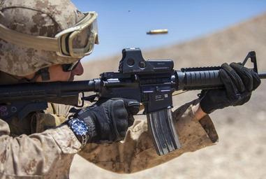 Keywords: 26th meu 26thmeu a certain force in an uncertain world acertainforceinanuncertainworld afcent arcent cas centcom combat camera combatcamera comcam deployment eager lion 13 eagerlion13 force recon forcerecon jordanian armed forces jordanianarmedforces live fire livefire marcent mentorship navcent shooting soccent u.s. marines usmarines uscentcom jordan outdoor A 26th Marine Expeditionary Unit (MEU) Maritime Raid Force Marine fires an M4 Carbine at a range in Jordan, June 19, 2013. Exercise Eager Lion 2013 is an annual, multinational exercise designed to strengthen military-to-military relationships and enhance security and stability in the region by responding to modern-day security scenarios. The 26th MEU is deployed to the 5th Fleet area of responsibility as part of the Kearsarge Amphibious Ready Group. The 26th MEU operates continuously across the globe, providing the president and unified combatant commanders with a forward-deployed, sea-based quick reaction force. (U.S. Marine Corps photograph by Sgt. Christopher Q. Stone, 26th MEU Combat Camera/Released) Photo courtesy of US Marine Coprs. As so - in public domain. A 26th Marine Expeditionary Unit (MEU) Maritime Raid Force Marine fires an M4 Carbine at a range in Jordan, June 19, 2013. Exercise Eager Lion 2013 is an annual, multinational exercise designed to strengthen military-to-military relationships and enhance security and stability in the region by responding to modern-day security scenarios. The 26th MEU is deployed to the 5th Fleet area of responsibility as part of the Kearsarge Amphibious Ready Group. The 26th MEU operates continuously across the globe, providing the president and unified combatant commanders with a forward-deployed, sea-based quick reaction force. (U.S. Marine Corps photograph by Sgt. Christopher Q. Stone, 26th MEU Combat Camera/Released) Photo courtesy of US Marine Coprs. As so - in public domain. |