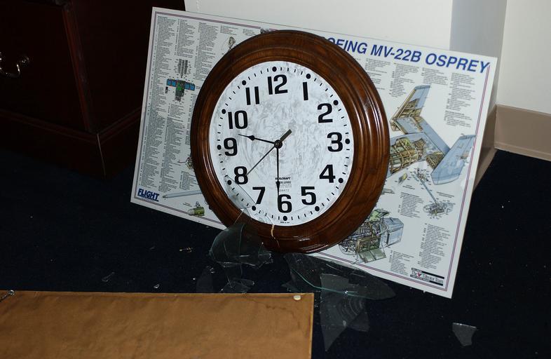 Keywords: US Navy 010914-F-4692S-017 clock frozen at the time of impact.jpg en Arlington Va Sep 14 2001 -- A Clock frozen at the time of impact when a hijacked commercial airliner crashed into the Pentagon on Sep 11 The terrorist attack caused extensive damage to the Pentagon American Airlines FLT 77 was bound for Los Angeles from Washington Dulles with 58 passengers and 6 crew All aboard the aircraft were killed along with 125 people in the Pentagon U S Navy Photo Courtesy of DoD Photographer Staff Sgt Larry A Simmons RELEASED 2001-09-14 010914-F-4692S-017 Navy http //www navy mil/view_image asp id 2480 U S Navy photo PD-USGov-Military-Navy The Pentagon on 14 September 2001 Photographs taken on 2001-09-14 MV-22B Osprey Clocks in the United States Time 09 31 |