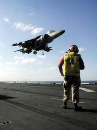 Keywords: US Navy 020213-N-2383B-515 AV-8B.jpg en 020213-N-2383B-515 At sea aboard USS Bataan LHD 5 Feb 12 2002 A U S Marine Corps AV-8B Harrier assigned to the Blue Knights of Marine Helicopter Medium Squadron Three Six Five HMM-365 prepares to land on the flight deck of USS Bataan Bataan and elements of the 26th Marine Expeditionary Unit MEU Special Operations Capable SOC are conducting missions in support of Operation Enduring Freedom U S Navy photo by Chief Photographer's Mate Johnny Bivera RELEASED 2002-02-12 020213-N-2383B-515 Navy http //www navy mil/view_image asp id 811 U S Navy photo by Chief Photographer's Mate Johnny Bivera PD-USGov-Military-Navy Personality rights 13 February 2002 events in the United States February 2002 photographs February 2002 in the United States Military people in 2002 AV-8B Harrier II US Marine Corps in flight VMM-365 Aboard USS Bataan LHD-5 |