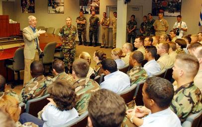 Keywords: US Navy 020220-N-5636P-002 SECNAV at Southern Command.jpg en 020220-N-5636P-002 Miami FL Feb 20 2002 -- The Honorable Gordon R England Secretary of the Navy holds an All Hands Call with Navy and Marine Corps personnel during a visit to U S Southern Command Miami Florida Mr England thanked the Sailors and Marines for their service and contribution to the war on terrorism and addressed key issues on the 2003 budget ship construction and military pay Secretary England also visited the Joint Inter-Agency Task Force East located in Key West and U S Central Command in Tampa U S Navy photo by Chief Photographer s Mate Dolores L Parlato RELEASED 2002-02-20 020220-N-5636P-002 Navy http //www navy mil/view_image asp id 867 U S Navy photo by Chief Photographer s Mate Dolores L Parlato PD-USGov-Military-Navy Images from US Navy location Miami Fla Gordon R England 2002 in Miami February 2002 photographs |