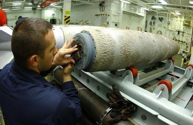 | Keywords: US Navy 020305-N-2722F-080 BLU-111 Penetrating Bomb.jpg en 020305-N-2722F-080 At sea aboard USS John C Stennis CVN 74 Mar 5 2002 -- Aviation Ordnanceman Airman Apprentice Ernest Kalnas installs an FMU-139BB electric tail fuse on a 500-pound BLU-111 Penetrating bomb while working in one of the aircraft carrier's weapon magazines John C Stennis and Carrier Air Wing Nine CVW-9 are conducting combat missions in support of Operation Enduring Freedom U S Navy photo by Photographer's Mate 2nd Class James A Farrally II RELEASED 2002-03-05 020305-N-2722F-080 Navy http //www navy mil/view_image asp id 937 U S Navy photo by Photographer's Mate 2nd Class James A Farrally II PD-USGov-Military-Navy March 2002 photographs 5 March March 2002 in the United States Aboard USS John C Stennis CVN-74 |