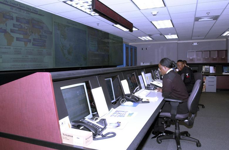 | Keywords: US Navy 020308-N-1993R-501 Navy Command Center, Pentagon.jpg en Pentagon Washington DC Mar 8 2002 -- The Navy Command Center is operational and monitoring the U S Navy Fleet just as it did prior to the terrorist attacks on September 11th 2001 The Command Center moved back to the Pentagon in February and will be fully restored later this summer The center which is manned 24 hours a day maintains a constant watch on the fleet keeping the U S Navy's senior leadership informed of global developments U S Navy photo by Photographer's Mate 2nd Class R Deuce Rubio RELEASED 2002-03-08 020308-N-1993R-501 Navy http //www navy mil/view_image asp id 987 U S Navy photo by Photographer's Mate 2nd Class R Deuce Rubio PD-USGov-Military-Navy Interior of The Pentagon March 2002 photographs People using computers in the 2000s March 2002 in Virginia Military people in 2002 African American sailors Military people on duty Photos taken with Nikon D1 Female sailors Photographs of sitting people Personality rights |