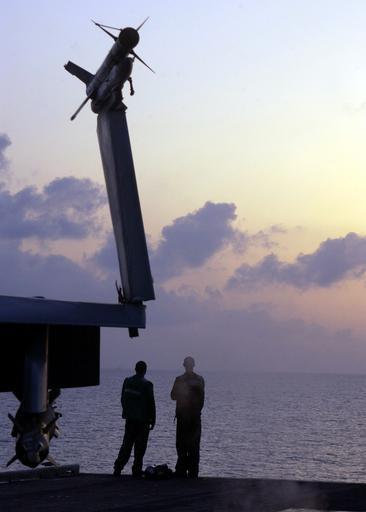 | Keywords: US Navy 020419-N-3397A-007 USS Kennedy - sunrise on the flight deck.jpg en At sea aboard USS John F Kennedy CV 67 Apr 19 2002 -- Two sailors watch the sunrise from the flight deck between flight operations Kennedy and her embarked Carrier Air Wing Seven CVW-7 are conducting combat missions over Afghanistan in support of Operation Enduring Freedom U S Navy photo by Photographer's Mate Airman Apprentice Ruben U Apodaca RELEASED 2002-04-19 020419-N-3397A-007 Navy http //www navy mil/view_image asp id 1333 U S Navy photo by Photographer's Mate Airman Apprentice Ruben U Apodaca PD-USGov-Military-Navy Personality rights April 2002 photographs Aboard USS John F Kennedy CV-67 United States Navy in the War in Afghanistan 2001-present War in Afghanistan 2001-present related operations outside of Afghanistan Operation Enduring Freedom in 2002 Military people in 2002 April 2002 in the United States 19 April Military people on duty Male soldiers Men at work |