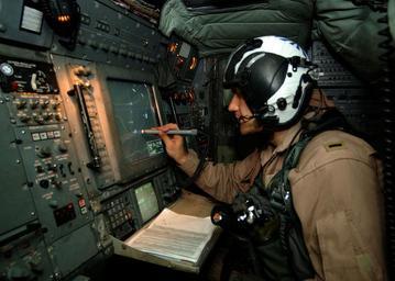| Keywords: US Navy 020424-N-6492H-535 E-2C - combat mission.jpg en At sea with USS John F Kennedy CV 67 Apr 24 2002 -- Lt j g Shane Tanner a Naval Flight Officer assigned to the Bluetails of Carrier Airborne Early Warning Squadron One Two One VAW-121 tracks aircraft at his station in an E-2C Hawkeye while on a combat mission over Afghanistan Kennedy and her embarked Carrier Air Wing Seven CVW-7 are conducting combat missions in support of Operation Enduring Freedom U S Navy photo by Photographer s Mate 1st Class Jim Hampshire RELEASED 2002-04-24 020424-N-6492H-535 Navy http //www navy mil/view_image asp id 1412 U S Navy photo by Photographer s Mate 1st Class Jim Hampshire PD-USGov-Military-Navy Personality rights April 2002 photographs Aboard USS John F Kennedy CV-67 E-2 Hawkeye interiors E-2 Hawkeye interiors United States Navy in the War in Afghanistan 2001-present Operation Enduring Freedom in 2002 24 April April 2002 in the United States Military people on duty Male soldiers Men at work People using computers in the 2000s Taken with Nikon D1H Airborne Early Warning Squadron 121 United States Navy |