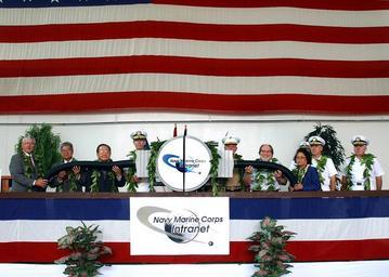 | Keywords: US Navy 020702-N-3228G-001 Navy Marine Corps Intranet (NMCI) Oahu Network Operations Center.jpg en Pearl Harbor HI Jul 2 2002 -- The official party connects a ceremonial plug officially opening the Navy Marine Corps Intranet NMCI Oahu Network Operations Center that will ultimately link more than 400 000 desktop computers across the United States Puerto Rico Iceland and Oahu The NMCI Network Operations Center is located on Ford Island and will employ 200 personnel in a variety of information technology jobs From left to right is Mike Finn Director Navy Establishment NMCI Information Strike Force; U S Senator Daniel K Akaka U S Senator Daniel K Inouye; Rear Adm Charles L Munns Director Navy Marine Corps Intranet; Brig Gen Jerry C McAbee Commanding General Marine Corps Base Hawaii; U S Rep Neil Abercrombie; U S Rep Patsy T Mink Commander in Chief U S Pacific Fleet Adm Walter F Doran and Commander Navy Region Hawaii Rear Adm Robert T Conway Jr U S Navy photo by Photographer's Mate 1st Class William R Goodwin 2002-07-02 020702-N-3228G-001 Navy http //www navy mil/view_image asp id 1855 U S Navy photo by Photographer's Mate 1st Class William R Goodwin PD-USGov-Military-Navy Daniel Akaka Daniel Inouye Charles L Munns Neil Abercrombie Patsy Mink Walter Doran Robert T Conway Jr People at Pearl Harbor 2002 in Pearl Harbor Images from US Navy location Pearl Harbor Hawaii Photographs by William R Goodwin |