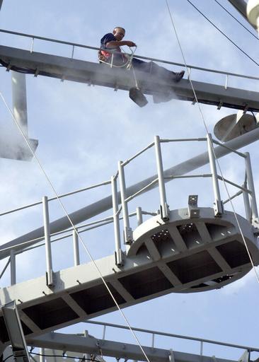 Keywords: US Navy 020718-N-1212B-001 USS La Salle (AGF 3).jpg en Gaeta Italy Jul 18 2002 -- A Sailor wearing a safety harness while he makes his way down a yardarm to work on an anemometer aboard the U S Navy s Sixth Fleet flagship USS La Salle AGF 3 Anemometers are used by Aerographer's Mates AG s to measure wind direction and wind speed U S Navy photo by Journalist 2nd Class Alyssa Batarla RELEASED 2002-07-18 020718-N-1212B-001 Navy http //www navy mil/view_image asp id 2012 U S Navy photo by Journalist 2nd Class Alyssa Batarla PD-USGov-Military-Navy Aboard USS La Salle AGF-3 Aerographer's Mate July 2002 photographs |