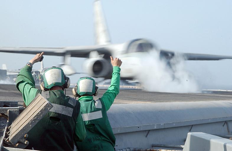 Keywords: US Navy 020727-N-3986D-001 S-3B Viking catapult launch from aircraft carrier.jpg en At sea aboard USS George Washington CVN 73 Jul 27 2002 -- Aviation flight deck personnel give a thumbs up for launch as an S-3B Viking from the Diamond Cutters of Carrier Antisubmarine Warfare Squadron Three Zero VS-30 launches from one of four steam driven catapults on the ship s flight deck George Washington and Carrier Air Wing One Seven CVW-17 are on a regularly-scheduled deployment conducting missions in support of Operation Enduring Freedom U S Navy photo by Photographer's Mate Airman Jessica Davis RELEASED 2002-07-27 020727-N-3986D-001 Navy http //www navy mil/view_image asp id 2114 U S Navy photo by Photographer's Mate Airman Jessica Davis PD-USGov-Military-Navy Aboard USS George Washington CVN-73 July 2002 photographs |