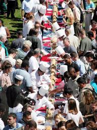 | Keywords: US Navy 020917-N-3456R-020 Sailors, students, and their families are fed a free lunch of gargantuan proportions.jpg en Naval Postgraduate School Monterey Calif Sept 17 2002 -- Sailors students and their families are fed a free lunch of gargantuan proportions as Mr Jim Thomas quality of life director at the school presents the 'world s largest sandwich ever made in Monterey' to a crowd of astonished spectators This free lunch salute is a way to show our appreciation to military personnel and their families for their dedication and commitment They make tremendous sacrifices to maintain national security and we are very proud of them he said The event featured a festive outdoor family program with great food and music Nearly 1 000 service members and their families received a slice of the meat-filled sub U S Navy Photo by Journalist 2nd Class J Anthony Reese RELEASED 2002-09-17 020917-N-3456R-020 Navy http //www navy mil/view_image asp id 2905 U S Navy Photo by Journalist 2nd Class J Anthony Reese PD-USGov-Military-Navy 17 September 2002 in California September 2002 photographs Crowds in the United States September 2002 in the United States Naval Postgraduate School |