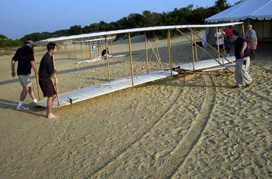 | Keywords: US Navy 021003-N-6967M-030 A Sailor helps move a replica of the 1902 Wright brothers' glider from a protective tent.jpg en Jockey's Ridge State Park N C Oct 3 2002 -- Lt Cmdr Klas Santa Ohman from aboard USS Kitty Hawk CV 63 helps move a replica of the 1902 Wright brothers' glider from a protective tent for assembly before its final flight Ohman is one of only three military pilots with the honor of flying the glider during the commemorative event Return to Kitty Hawk scheduled for the first weekend in October U S Navy photo by Photographer's Mate 1st Class Shane T McCoy RELEASED 2002-10-03 021003-N-6967M-030 Navy http //www navy mil/view_image asp id 2889 U S Navy photo by Photographer's Mate 1st Class Shane T McCoy PD-USGov-Military-Navy Images from US Navy location Jockey's Ridge State Park N C October 2002 photographs Photographs by Shane T McCoy |
