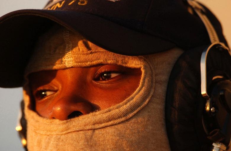 | Keywords: US Navy 021023-N-4953E-008 Operation Specialist Third Class Angel Cobb, of San Francisco, Calif., assigned OI Division in the Operation's Department.jpg en At sea aboard USS Harry S Truman CVN 75 -- Operation Specialist Third Class Angel Cobb of San Francisco Calif assigned OI Division in the Operation's Department stands the lookout watch during sea and anchor detail as Truman departs to participant in a Joint Task Force Exercise JTFEX which will prepare the crew for it s upcoming scheduled six-month deployment U S Navy Photo by Photographers Mate 3rd Class Danny Ewing Jr RELEASED 021023-N-4953E-008 Navy http //www navy mil/view_image asp id 3150 U S Navy Photo by Photographers Mate 3rd Class Danny Ewing Jr PD-USGov-Military-Navy Balaclavas Aboard USS Harry S Truman CVN-75 Photographs by Danny Ewing Jr |