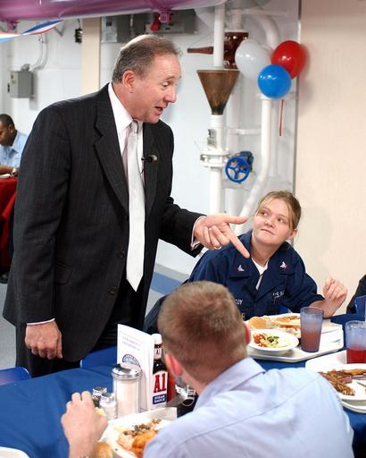 | Keywords: US Navy 021030-N-0967W-006 Michael Reagan chats with PCU Ronald Reagan Sailors.jpg en Newport News Va Oct 30 2002 -- Michael Reagan eldest son of President Ronald Reagan chats with Sailors assigned to the nuclear powered aircraft carrier Pre-commissioning Unit Ronald Reagan CVN 76 during a lunch prepared on the newly opened ship s mess decks Michael Reagan was guest speaker for the ceremonies marking the official move of ship s company aboard the carrier The Nimitz-class aircraft carrier Ronald Reagan is scheduled to join the fleet during commissioning ceremonies in May 2003 U S Navy photo by Photographer s Mate 3rd Class Anthony Walker RELEASED 2002-10-30 021030-N-0967W-006 Navy http //www navy mil/view_image asp id 3203 U S Navy photo by Photographer s Mate 3rd Class Anthony Walker PD-USGov-Military-Navy 30 September People in conversation Images from US Navy location Newport News Virginia Michael Reagan Chatting Mess decks of USS Ronald Reagan CVN-76 October 2002 photographs October 2002 in Virginia Military people in 2002 Taken with Nikon D1X Military people and civilians Female sailors Personality rights |