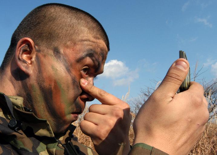 Keywords: US Navy 021121-N-8726C-001 Base security training preparations.jpg en Aboard Misawa Air Force Base Japan Nov 21 2002 -- Senior Airman Emilio Loera assigned to the U S Air Force 35th Security Forces Squadron applies face paint prior to the start of quarterly joint services air base defense training Training is designed to prepare security units to protect forward deployed facilities and equipment against hostile forces including enemy fire and sniper fire U S Navy photo by Photographer s Mate 2nd Class John Collins RELEASED Aboard Misawa Air Force Base Japan Nov 21 2002 -- Senior Airman Emilio Loera assigned to the U S Air Force 35th Security Forces Squadron applies face paint prior to the start of quarterly joint services air base defense training Training is designed to prepare security units to protect forward deployed facilities and equipment against hostile forces including enemy fire and sniper fire U S Navy photo by Photographer s Mate 2nd Class John Collins RELEASED 2002-11-21 021121-N-8726C-001 Navy http //www navy mil/view_image asp id 3477 U S Navy photo by Photographer s Mate 2nd Class John Collins PD-USGov-Military-Navy Images from US Navy location MISAWA Japan Camouflage facepainting November 2002 photographs Military people in 2002 November 2002 in Japan 21 November Personality rights |