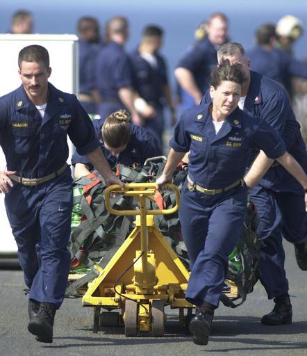 Keywords: US Navy 021218-N-3443B-010 Sailors aboard the amphibious command ship work overtime to move over 100 pallets of supplies.jpg en At sea aboard USS Mount Whitney LCC/JCC 20 Dec 18 2002 -- Sailors aboard the amphibious command ship work overtime to move over 100 pallets of supplies that they received during a vertical replenishment VERTREP in the Gulf of Aden The ship is in the Horn of Africa region participating in the continuing war on Terrorism U S Navy photo by Chief Journalist Robert Benson RELEASED 2002-12-18 021218-N-3443B-010 Navy http //www navy mil/view_image asp id 3780 U S Navy photo by Chief Journalist Robert Benson PD-USGov-Military-Navy Aboard USS Mount Whitney LCC-20 Vertical replenishment |