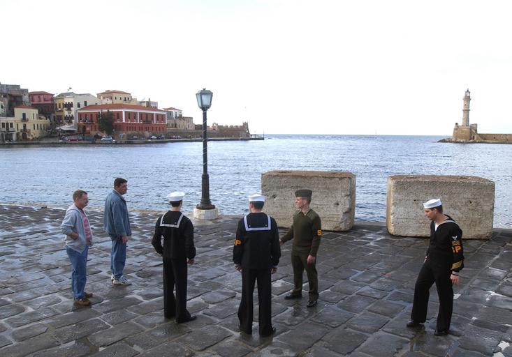 | Keywords: US Navy 030101-N-0780F-002 Shore Patrol talk with Sailors.jpg en Souda Bay Crete Greece Jan 1 2003 -- Harry S Truman Shore Patrol talk with Sailors on New Year's Day in Chania's old Venetian harbor area during their holiday port visit to this eastern Mediterranean port Truman and her embarked Carrier Air Wing Three CVW-3 are on a regularly scheduled six-month deployment conducting combat missions in support of Operation Enduring Freedom U S Navy photo by Paul Farley RELEASED 2003-01-01 030101-N-0780F-002 Navy http //www navy mil/view_image asp id 3924 U S Navy photo by Paul Farley PD-USGov-Military-Navy Chania Old Harbour January 2003 photographs Military people in 2003 Street lights in Chania Military people in Chania 2003 in Chania 0101 January 2003 in Greece 01 |