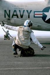 | Keywords: US Navy 030116-N-9964S-002 Flight deck quality control safety observers give a ready for launch signal to flight deck aircraft handlers.jpg en At sea aboard USS Harry S Truman CVN 75 Jan 16 2003 -- Flight deck quality control safety observers give a ready for launch signal to flight deck aircraft handlers during final preparations for launch of a E-2C Hawkeye Harry S Truman and Carrier Air Wing Three CVW-3 are currently on a regularly scheduled deployment conducting missions in support of Operation Enduring Freedom U S Navy photo by Photographer s Mate 3rd Class Christopher B Stoltz RELEASED 2003-01-16 030116-N-9964S-002 Navy http //www navy mil/view_image asp id 4145 U S Navy photo by Photographer s Mate 3rd Class Christopher B Stoltz PD-USGov-Military-Navy Aboard USS Harry S Truman CVN-75 Northrop Grumman E-2C Hawkeye aircraft carrier take-offs |