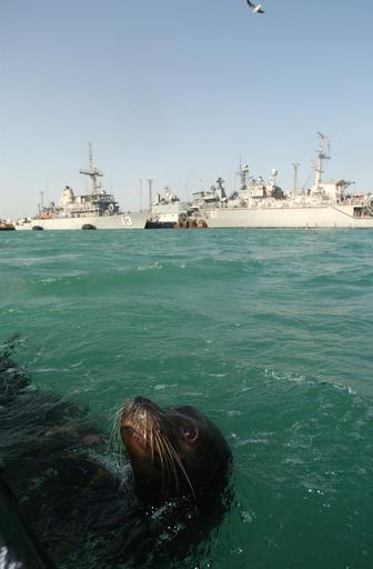 Keywords: US Navy 030129-N-5319A-005 Shallow Water Intruder Detection System (SWIDS) program.jpg en Central Command Area of Responsibility Jan 29 2003 -- Zak a 375-pound California sea lion swims near some pier-side ships during one of many training swims taking place in the Central Command AOR Zak is participating in the Space and Naval Warfare Systems Center s Shallow Water Intruder Detection System SWIDS program Zak has been trained to locate swimmers near piers ships and other objects in the water considered suspicious and a possible threat to military forces in the area SWIDS program has been deployed as part of the continued effort to support missions under Operation Enduring Freedom U S Navy Photograph by Photographers Mate First Class Brien Aho RELEASED 2003-01-29 030129-N-5319A-005 Navy http //www navy mil/view_image asp id 4359 U S Navy photo PD-USGov-Military-Navy United States Navy images from Central Command United States Navy Marine Mammal Program |