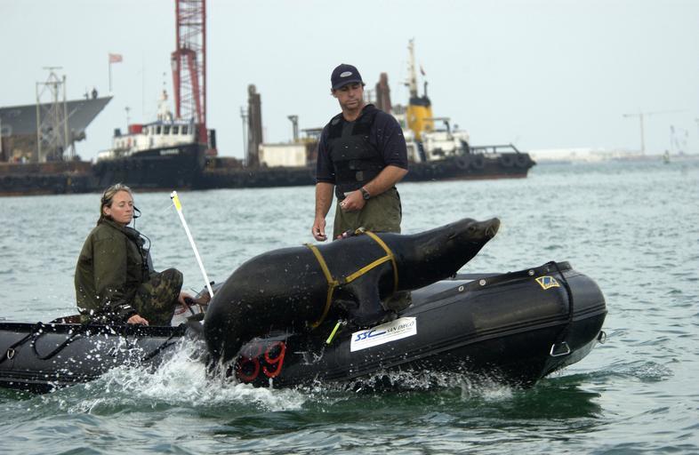 Keywords: US Navy 030212-N-3783H-002 Zak, a 375-pound California sea lion leaps back into the boat following harbor patrol training.jpg en Central Command Area of Responsibility Feb 12 2003 -- Zak a 375-pound California sea lion leaps back into the boat following harbor patrol training Zak is participating in the Space and Naval Warfare Systems Center s Shallow Water Intruder Detection System SWIDS program Zak has been trained to locate swimmers near piers ships and other objects in the water considered suspicious and a possible threat to military forces in the area SWIDS program has been deployed as part of the continued effort to support missions under Operation Enduring Freedom U S Navy Photograph by Photographers Mate 2nd Class Bob Houlihan RELEASED 2003-02-12 030212-N-3783H-002 Navy http //www navy mil/view_image asp id 4497 U S Navy photo PD-USGov-Military-Navy People with sea mammals Unidentified Otariidae United States Navy Marine Mammal Program United States Navy images from Central Command |