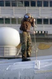 Keywords: US Navy 030308-N-4142G-006 Mathew Smith scrubs the top of an EA-6B Prowler.jpg en The Arabian Gulf Mar 8 2003 -- Airman Mathew Smith scrubs the top of an EA-6B Prowler assigned to the Lancers of Electronic Attack Squadron One Three One VAQ-131 while conducting a plane wash on the flight deck of the aircraft carrier USS Constellation CV-64 Constellation is currently deployed and conducting missions in support of Operations Southern Watch and Enduring Freedom U S Navy photo by Photographer's Mate 2nd Class Felix Garza RELEASED 2003-03-08 030308-N-4142G-006 Navy http //www navy mil/view_image asp id 5090 U S Navy photo by Photographer's Mate 2nd Class Felix Garza PD-USGov-Military-Navy Grumman EA-6 Prowler Aboard USS Constellation CV-64 Electronic Attack Squadron 131 United States Navy Photographs by Felix Garza Jr |
