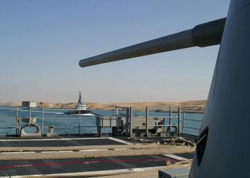 | Keywords: US Navy 030314-N-0115R-026 The spruance class destroyer USS Deyo (DD 989) makes it^rsquo,s transit through the Suez Canal from the Mediterranean Sea to the Red Sea.jpg  en Suez Canal March 14 2003 -- The Spruance class destroyer USS Deyo DD 989 makes it s transit through the Suez Canal from the Mediterranean Sea to the Red Sea Deyo is the first U S warship to enter the Red Sea during recent movements to the Cental Command area of operations in support of Operation Enduring Freedom U S Navy photo by Journalist 2nd Class Patrick Reilly RELEASED 2003-03-14 030314-N-0115R-026 Navy http //www navy mil/view_image asp id 5160 U S Navy photo by Journalist 2nd Class Patrick Reilly PD-USGov-Military-Navy US Navy in the Suez Canal Aboard USS Deyo DD-989 |