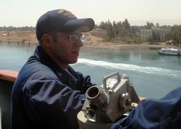 View Original:US_Navy_030314-N-0115R-217_Operations_Specialist_3rd_Class_Jodfrey_Bandstra_of_Richmond,_Va.,_stands_navigational_and_safety_watch_as_the_spruance_class_destroyer_USS_DEYO_(DD_989)_makes_its_transit_through_the_Suez_Canal_into.jpg (2100x1500)