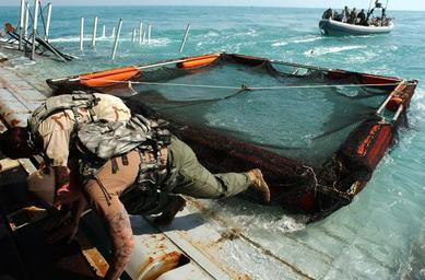 | Keywords: US Navy 030317-N-5319A-017 Members of the Deep-Shallow Water Mark 7 crew from Commander Task Unit (CTU-55.4.3) deploy a Miller Pen that will house a Bottle Nose Dolphin operating near the USS Gunston Hall (LSD 44).jpg en Central Command Area of Operation Mar 17 2003 -- Members of the Deep/Shallow Water Mark 7 crew from Commander Task Unit CTU-55 4 3 deploy a Miller Pen that will house a Bottle Nose Dolphin operating near the USS Gunston Hall LSD 44 in the Arabian Gulf CTU-55 4 3 is a multinational team consisting of Naval Special Clearance Team-One Fleet Diving Unit Three from the United Kingdom Clearance Dive Team from Australia and Explosive Ordnance Disposal Mobile Units Six and Eight EODMU-6 and EODMU-8 These units are conducting deep/shallow water mine counter measure operations to clear shipping lanes for humanitarian relief CTU-55 4 3 and USS Gunston Hall are currently forward deployed conducting missions in support of Operation Iraqi Freedom the multinational coalition effort to liberate the Iraqi people eliminate Iraq's weapons of mass destruction and end the regime of Saddam Hussein U S Navy photo by Photographer s Mate 1st Class Brien Aho RELEASED 2003-03-17 030317-N-5319A-017 Navy http //www navy mil/view_image asp id 5705 U S Navy photo by Photographer s Mate 1st Class Brien Aho PD-USGov-Military-Navy United States Navy images from Central Command Aboard USS Gunston Hall LSD-44 United States Navy Explosive Ordnance Disposal United States Navy Marine Mammal Program Arm tattoos Explosive Ordnance Disposal Mobile Unit 6 Explosive Ordnance Disposal Mobile Unit 8 United States Naval Special Clearance Team One |