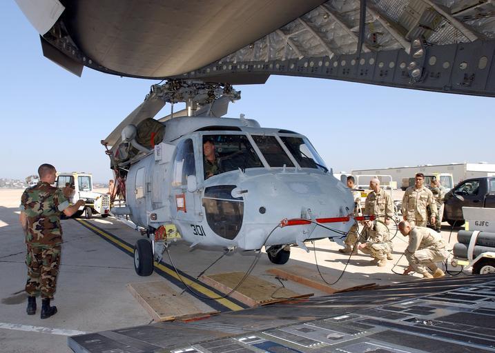Keywords: US Navy 030321-N-0226M-001 An HH-60H Seahawk helicophter from Helicopter Combat Support Squadron Five (HC-5) is loaded into a U.S. Air Force C-17 Globemaster III aircraft.jpg en San Diego Calif Mar 21 2003 -- An HH-60H Seahawk helicopter from Helicopter Combat Support Squadron Five HC-5 is loaded into a U S Air Force C-17 Globemaster III aircraft The squadron's helicopters aircrew and ground support personnel are being transported to an undisclosed destination in the Northern Arabian Gulf U S Navy photo by Senior Chief Photographer's Mate Mahlon K Miller RELEASED 2003-03-21 030321-N-0226M-001 Navy http //www navy mil/view_image asp id 5476 U S Navy photo by Senior Chief Photographer's Mate Mahlon K Miller PD-USGov-Military-Navy Naval Air Station North Island in the 2000s HH-60H Rescue Hawk Transport of helicopters by Boeing C-17 Globemaster III |