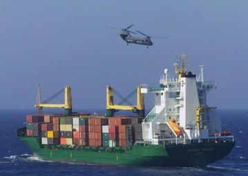 Keywords: US Navy 030326-N-9867P-003 A CH-46 Sea Knight helicopter performs a vertical replenishment (VERTREP) with the supply ship Warnow Trader.jpg en The Gulf of Aden Mar 26 2003 -- A CH-46 Sea Knight helicopter performs a vertical replenishment VERTREP with the supply ship Warnow Trader while deployed Warnow Trader is using the supplies to feed the troops from the 2nd Army Division which is fighting in support of Operation Iraqi Freedom Mt Whitney and embarked Marines are deployed to the Horn of Africa region in support of Operation Enduring Freedom U S Navy photo by Photographer s Mate 3rd Class Scott Phillips RELEASED 2003-03-26 030326-N-9867P-003 Navy http //www navy mil/view_image asp id 5849 U S Navy photo by Photographer s Mate 3rd Class Scott Phillips PD-USGov-Military-Navy Vertical replenishment CH-46 Sea Knight Warnow Trader ship 1996 Operation Enduring Freedom in 2003 0326 Piracy in Somalia Operation Enduring Freedom Horn of Africa |