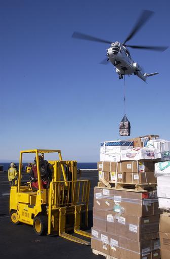 | Keywords: US Navy 030326-N-4308O-016 Flightdeck personnel use forklifts to position cargo as an SA-332 Super Puma helicopter is used to airlift supplies from the Military Sealift Command ship USNS Saturn (AFS 10) to the flight deck of US.jpg en Mediterranean Sea Mar 26 2003 -- Flightdeck personnel use forklifts to position cargo as an SA-332 Super Puma helicopter is used to airlift supplies from the Military Sealift Command ship USNS Saturn AFS 10 to the flight deck of USS Harry S Truman CVN 75 Truman and her embarked Carrier Air Wing Three CVW-3 are operating in support of Operation Iraqi Freedom Operation Iraqi Freedom is the multi-national coalition effort to liberate the Iraqi people eliminate Iraq s weapons of mass destruction and end the regime of Saddam Hussein U S Navy photo by Photographer s Mate Airman Ryan O'Connor RELEASED 2003-03-26 030326-N-4308O-016 Navy http //www navy mil/view_image asp id 5884 U S Navy photo by Photographer s Mate Airman Ryan O'Connor PD-USGov-Military-Navy Aboard USS Harry S Truman CVN-75 N330J aircraft |