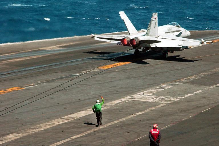 Keywords: US Navy 030326-N-7781D-078 An F-A-18 Hornet assigned to the ^ldquo,Silver Eagles^rdquo, of Marine Fighter Attack Squadron One One Five (VMFA-115).jpg en Mediterranean Sea Mar 26 2003 -- An F/A-18 Hornet assigned to the Silver Eagles of Marine Fighter Attack Squadron One One Five VMFA-115 makes an arrested landing on the flight deck of USS Harry S Truman CVN 75 after performing combat missions over Iraq Truman and her embarked Carrier Air Wing Three CVW-3 are operating in support of Operation Iraqi Freedom Operation Iraqi Freedom is the multi-national coalition effort to liberate the Iraqi people eliminate Iraq s weapons of mass destruction and end the regime of Saddam Hussein U S Navy photo by Photographer s Mate 2nd Class Andrea Decanini RELEASED 2003-03-26 030326-N-7781D-078 Navy http //www navy mil/view_image asp id 5886 U S Navy photo by Photographer s Mate 2nd Class Andrea Decanini PD-USGov-Military-Navy Aboard USS Harry S Truman CVN-75 F/A-18 Hornet aircraft carrier landings |