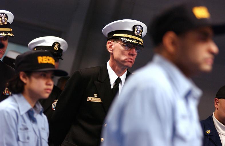| Keywords: US Navy 030327-N-0696M-044 USS Ronald Reagan (CVN 76), Commanding Officer, Capt. Jim Symonds, attends a hat ceremony marking the end of the Battle Stations portion of recruit training.jpg en Recruit Training Command Great Lakes Ill Mar 27 2004 - USS Ronald Reagan CVN 76 Commanding Officer Capt Jim Symonds attends a hat ceremony marking the end of the Battle Stations portion of recruit training The recruits were presented with Navy ball caps after the 24-hour training simulation and welcomed as U S Navy Sailors Symonds visited Recruit Training Command RTC and acted as Reviewing Officer for the graduation ceremonies U S Navy photo by Photographer's Mate 2nd Class Chad McNeeley RELEASED 2004-03-27 030327-N-0696M-044 Navy http //www navy mil/view_image asp id 13183 U S Navy photo by Photographer's Mate 2nd Class Chad McNeeley PD-USGov-Military-Navy Recruit Training Command Great Lakes Illinois James_Symonds |