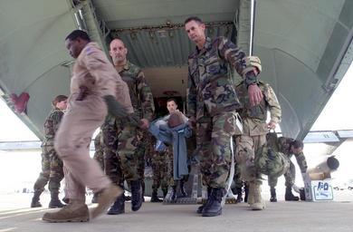 | Keywords: US Navy 030402-N-7438S-007 Members of the U.S. Air Force^rsquo,s 491st Expeditionary Air Evacuation Squadron and the U.S. Navy^rsquo,s Fleet Hospital Eight team.jpg en Rota Spain Apr 2 2003 -- Members of the U S Air Force s 491st Expeditionary Air Evacuation Squadron and the U S Navy s Fleet Hospital Eight team up to unload combat casualties from an Air Force C-141 Starlifter medical evacuation medevac plane to a waiting ambulance aboard Naval Station Rota The Galaxy transported 21 Operation Iraqi Freedom casualties from Kuwait to Rota for treatment at the field hospital Operation Iraqi Freedom is the multi-national coalition effort to liberate the Iraqi people eliminate Iraq s weapons of mass destruction and end the regime of Saddam Hussein U S Navy photo by Chief Journalist Dan Smithyman RELEASED 2003-04-02 030402-N-7438S-007 Navy http //www navy mil/view_image asp id 6269 U S Navy photo by Chief Journalist Dan Smithyman PD-USGov-Military-Navy Aircraft at Naval Station Rota Wounded military people |