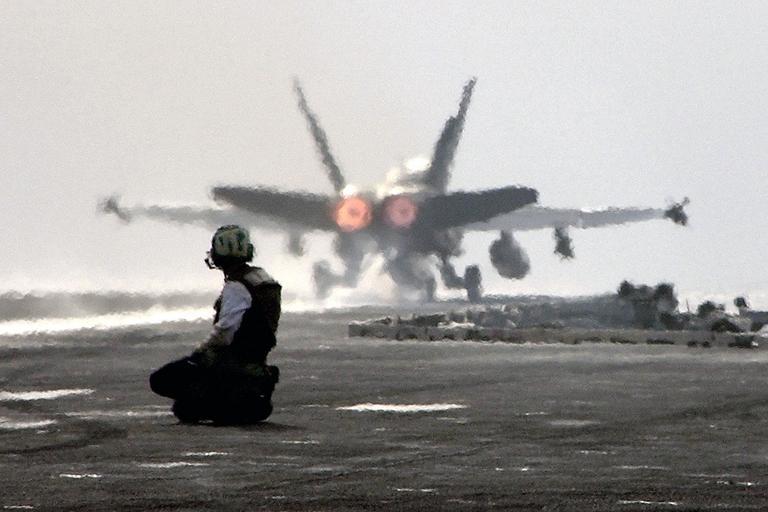 Keywords: US Navy 030403-N-4308O-020 n F-A-18 Hornet from the ^ldquo,Silver Eagles^rdquo, of Marine Fighter Attack Squadron One Fifteen (VMFA-115).jpg en The Mediterranean Sea Apr 3 2003 -- An F/A-18 Hornet from the Silver Eagles of Marine Fighter Attack Squadron One Fifteen VMFA-115 launches from the flight deck of USS Harry S Truman CVN 75 Truman and Carrier Air Wing Three CVW-3 are deployed in support of Operation Iraqi Freedom the multi-national coalition effort to liberate the Iraqi people eliminate Iraq's weapons of mass destruction and end the regime of Saddam Hussein U S Navy photo by Photographer's Mate Airman Ryan O'Connor RELEASED 2003-04-03 030403-N-4308O-020 Navy http //www navy mil/view_image asp id 6279 U S Navy photo by Photographer's Mate Airman Ryan O'Connor PD-USGov-Military-Navy Aboard USS Harry S Truman CVN-75 |