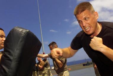 Keywords: US Navy 030404-N-9867P-012 U.S. Marine SSgt. Frank Shaskan from Scottsdale, N.C., practices an eye-gouging technique during a martial arts exercise aboard USS Mount Whitney (LCC-JCC 20).jpg en The Gulf of Aden Apr 4 2003 -- U S Marine SSgt Frank Shaskan from Scottsdale N C practices an eye-gouging technique during a martial arts exercise aboard USS Mount Whitney LCC/JCC 20 Mount Whitney is deployed to the Horn of Africa region participating in Operation Enduring Freedom and the global war on terrorism U S Navy photo by Photographer s Mate 3rd Scott Phillips RELEASED 2003-04-04 030404-N-9867P-012 Navy http //www navy mil/view_image asp id 6337 U S Navy photo by Photographer s Mate 3rd Scott Phillips PD-USGov-Military-Navy Aboard USS Mount Whitney LCC-20 |