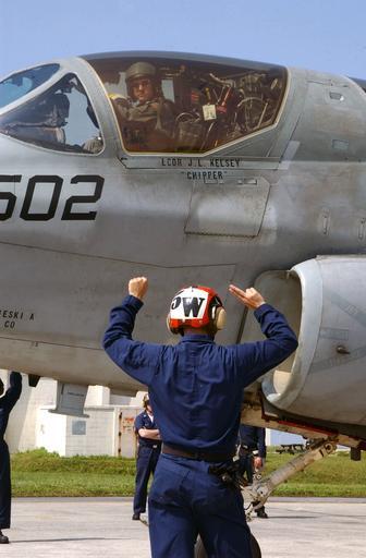 Keywords: US Navy 030409-N-4843P-003 During pre-flight checks, an EA-6B Prowler plane captain communicates to the aircrew to remove their hands from all controls as arming pins are removed.jpg en Kadena Air Base Okinawa Japan Apr 9 2003 -- During pre-flight checks an EA-6B Prowler plane captain Aviation Ordnanceman 1st Class Pepper Ringenberg assigned to the Yellow Jackets of Electronic Attack Squadron One Thirty Eight VAQ-138 communicates to the aircrew to remove their hands from all controls as arming pins are removed VAQ-138 is currently embarked aboard USS Carl Vinson CVN 70 with Carrier Air Wing Nine CVW-9 on deployment in the western Pacific Ocean conducting missions in support of Operation Enduring Freedom U S Navy photo by Photographer's Mate 2nd Class Anthony Pugliani RELEASED 2003-04-09 030409-N-4843P-003 Navy http //www navy mil/view_image asp id 6540 U S Navy photo by Photographer's Mate 2nd Class Anthony Pugliani PD-USGov-Military-Navy Kadena Air Base Grumman EA-6 Prowler Pre-flight checks US Navy Electronic Attack Squadron 138 United States Navy |