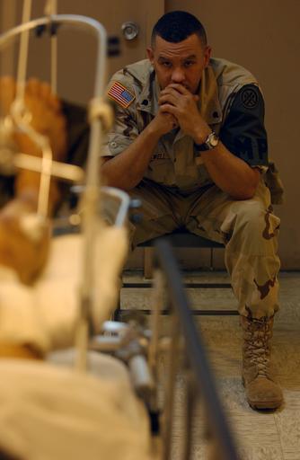 Keywords: US Navy 030423-N-6967M-156 Army Specialist Paris Blackwell keeps watch over Enemy Prisoners of War (EPWs).jpg en Aboard USNS Comfort T-AH 20 Apr 23 2003 -- Army Specialist Paris Blackwell keeps watch over Enemy Prisoners of War EPWs in one of the wards aboard USNS Comfort T-AH 20 Rooms had to be secured to be sure no weapons could be used against hospital staff Comfort is one of two hospital ships operated by Military Sealift Command and is designed to provide emergency on-site care for U S combatant forces deployed in war or other operations USNS Mercy T-AH 19 and Comfort each contain 12 fully-equipped operating rooms a 1 000 bed hospital facility digital radiological services a diagnostic and clinical laboratory a pharmacy an optometry lab a cat scan and two oxygen producing plants Both hospital ships are converted San Clemente-class super tankers Comfort set sail for New York City and provided housing laundry food medical and other services to volunteers and rescue personnel for nearly three weeks in the wake of the terrorist attack on the World Trade Center Comfort was activated again in December 2002 and sailed to the Arabian Gulf to support Operation Iraqi Freedom the multi-national coalition effort to liberate the Iraqi people eliminate Iraq s weapons of mass destruction and end the regime of Saddam Hussein U S Navy photo by Photographer's Mate 1st Class Shane T McCoy RELEASED 2003-04-23 030423-N-6967M-156 Navy http //www navy mil/view_image asp id 10874 U S Navy photo by Photographer's Mate 1st Class Shane T McCoy PD-USGov-Military-Navy Aboard USNS Comfort T-AH-20 Prisoners of war in the Iraq War Photographs by Shane T McCoy |