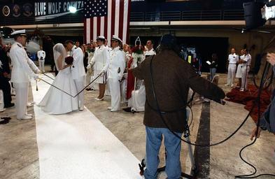 Keywords: US Navy 030501-N-3236B-009 Lt. David Kozminskiand his new wife walk down the white carpet while military honors are rendered after the couple are married within the squadron's hangar.jpg en Naval Air Station North Island Calif May 1 2003 -- Lt David Kozminski from Grand Rapids Mich a Navy pilot assigned to the Blue Wolves of Sea Control Squadron Thirty Five VS-35 and his new wife walk down the white carpet while military honors are rendered after the couple are married within the squadron's hangar The wedding was televised live on the national network television show Good Morning America and took place one day after Lt Kozminski's return from a nearly ten-month deployment VS-35 had been deployed aboard USS Abraham Lincoln CVN 72 in support of Operation Iraqi Freedom the multi-national coalition effort to liberate the Iraqi people eliminate Iraq s weapons of mass destruction and end the regime of Saddam Hussein U S Navy photo by Photographer's Mate 1st Class Ted Banks RELEASED 2003-05-01 030501-N-3236B-009 Navy http //www navy mil/view_image asp id 7272 U S Navy photo by Photographer's Mate 1st Class Ted Banks PD-USGov-Military-Navy Naval Air Station North Island in the 2000s Aboard USS Abraham Lincoln CVN-72 Good Morning America |